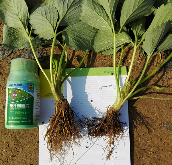 棲霞市草莓種植戶于國立,種植草莓十多年,是草莓種植高手,對肥料的使用很有經(jīng)驗也十分挑剔,是遠(yuǎn)近有名的土專家。他從來不會輕易選擇化肥,對市場上的各種品牌的化肥,他都會從產(chǎn)品的包裝,執(zhí)行標(biāo)準(zhǔn),生產(chǎn)批號,產(chǎn)品的成分進行觀察和比較。對產(chǎn)品的生產(chǎn)工藝比如高塔造粒,緩控釋等技術(shù)也十分了解,他對選擇的不同的品牌的化肥都進行實驗對比,看看那個品牌的肥料效果好。干事認(rèn)真的于大哥每天都呆在草莓地里觀察草莓生長情況。通過觀察。他將用了不同品種化肥的草莓不同時期的表現(xiàn)都進行記錄和比較,經(jīng)過一個生長周期的觀察,他發(fā)現(xiàn)施用眾德產(chǎn)品的草莓,移栽后緩苗期短,比用其他品牌的草莓緩苗期短1-2天,并且提苗快。葉色濃綠,葉片直立,葉面寬,莖干粗壯,花芽分化早飽滿,后期開花早,花瓣大。花蕾飽滿,花粉足,在同樣的生長環(huán)境條件,通過蜜蜂授粉后,坐果率能提高6%.果實發(fā)育整齊度高,果個差異小。比較勻整。發(fā)育快。專色也快。比施用其他化肥的提早2-5天上市。單果重明顯提高。果面表光亮,絢麗,口感好,甜度搞得達(dá)到18°。折合畝產(chǎn)高10%左右。通過這些細(xì)致的對比,于大哥義無反顧的選擇了眾德產(chǎn)品,并且至今已連續(xù)施用三年眾德公司的草莓套餐,連續(xù)獲得高產(chǎn),腰包也鼓起來了,挑剔的于大哥被眾德產(chǎn)品的質(zhì)量徹底征服。