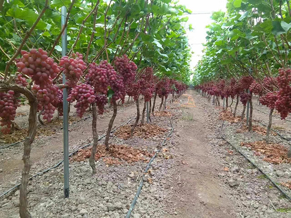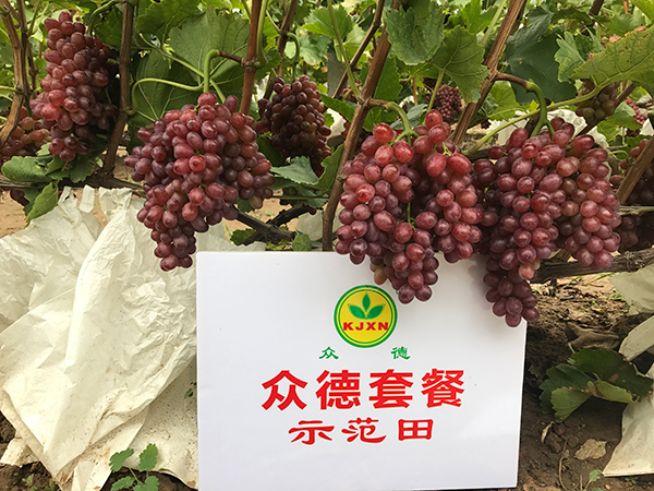 2015年10月20號,山東龍口市諸由觀鎮(zhèn)舒師傅的克瑞森葡萄喜獲豐收,通過專家現(xiàn)場測產(chǎn),4畝3年生示范園的畝產(chǎn)均在4000斤以上,而對照田只有3500斤,增產(chǎn)率達15%,今年畝效益超過2萬元。無論在果穗整齊度、顆粒大小、色澤、糖度、外觀上,示范園的葡萄均勝對照田一籌。
